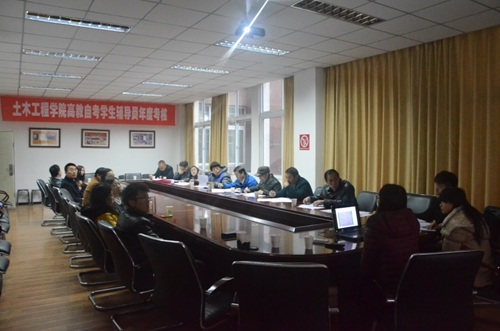 继续教育中心在1314会议室召开了中心高教自考学生辅导员2014年年终考评大会,中心高教自考学生15名辅导员老师全部参与了年终答辩。远程与继续教育学院曾家刚副院长,土木学院继续教育中心任宝良主任、中心教务办、中心学生办及各教学单位的负责人参加了本次考评大会,大会由继续教育中心杜鸿老师主持。所有考评的辅导员都进行了精彩的答辩,各位评委进行了认真的考评,最终评选出了刘潇等八位辅导员老师为年中心“2014优秀辅导员”,曾家刚副院长和任宝良主任对获奖的老师表示祝贺,并分别做了重要讲话。