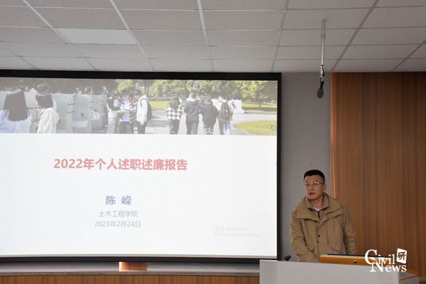 蒲黔辉院长做了学院工作报告和个人年度述职。蒲院长系统的从学校师资力量、人才培养、科学研究、实验室建设、对外合作交流情况、学生管理、资产管理与环境提升几个方面做了总结汇报,并表示在第五轮学科评估中,土木工程学科发展取得新突破,同时也强调,在后交通时代加快传统土木学科转型升级的必要性与紧迫性。