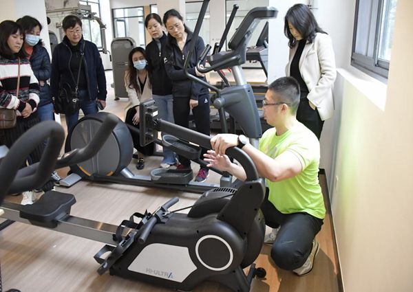 教职工健身中心,并于2023年3月30日15:00-16:00进行健身器械使用培训,邀请了专业健身教练曾教练现场指导大家使用健身器材、锻炼身体。