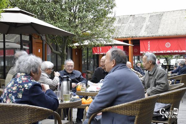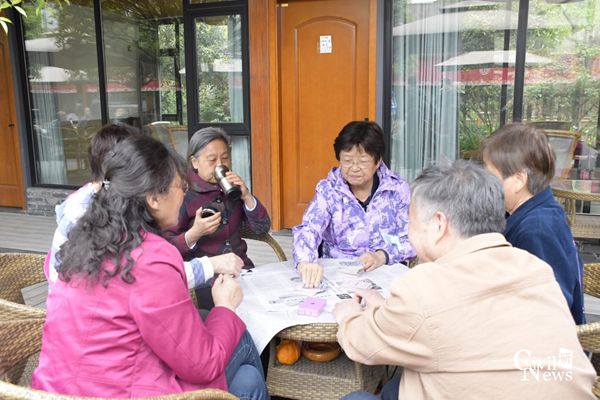 中午12点,大家一同前往餐厅就餐。餐前,学院党委高平平书记向各位退休的老同志们致以最真挚的问候与祝福。餐后,大家各自进行娱乐活动,有的喝茶聊天叙旧,有的打麻将或是打扑克牌,还有的继续参观云凌草堂,踏青享乐。所有的退休老同志们都乐享于这轻松愉悦的气氛之中。