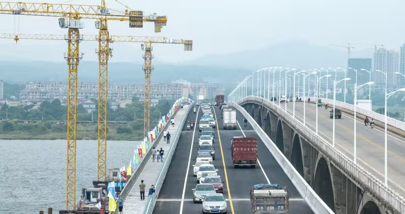 左边是近几年新修的左幅桥,于2024年9月15号全面通车,右边是赣江大桥老桥,可能会在今后拆除,建一个新的右幅桥。