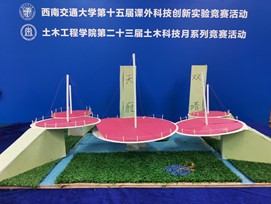 5月13日上午,第十五届大学生课外创新实验竞赛活动暨土木科技月桥梁造型组决赛在犀浦校区四教X4350隆重举行。此次比赛不仅是为了评审出美观且实用性强的桥梁模型,而且是一场集工程、结构、美学、文化艺术于一体桥梁模型展览会。
