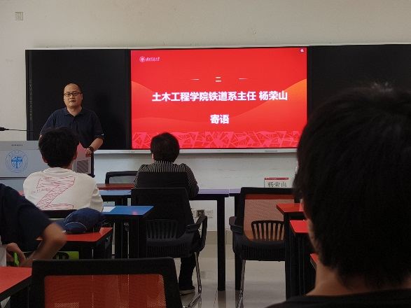 铁道系系主任杨荣山为2022级学生代表授礼,传达了对各位学生的祝贺。