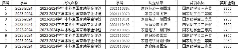 【资助】2023-2024学年芒果视频 国家助学金评选补充公示