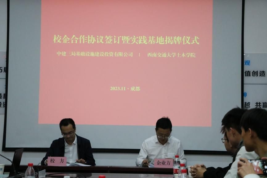 联合中建三局基础设施建设投资有限公司签订校企合作协议暨开展企业开放日活动。