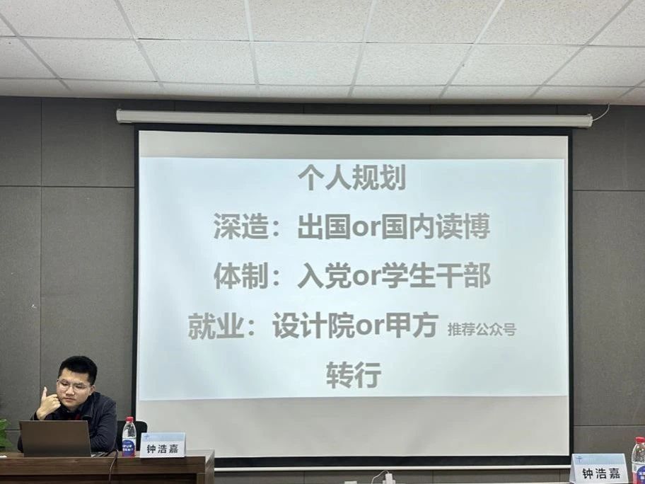 对于研究生同学来说,提前规划未来方向也是十分必要的。我们在毕业时可能会选择继续读博深造、进入体制内工作或者直接就业。如果选择出国就要提早准备雅思和托福,还要有小论文的发表;如果选择在体制内工作就要尽快入党,多参加学生工作;在就业方面师兄也给大家推荐了一些与土木相关的就业信息公众号供大家参考。