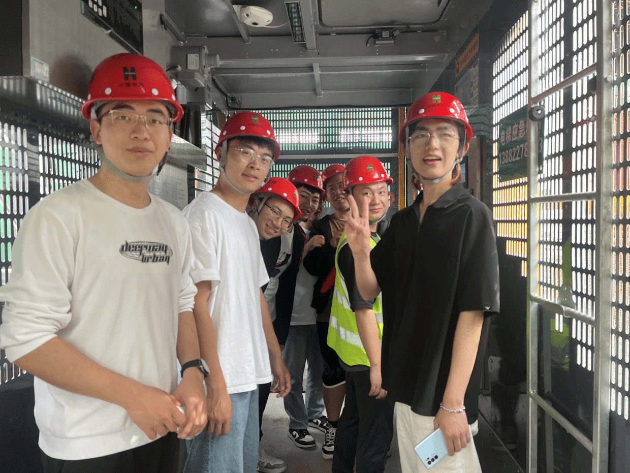 过程中,工作人员向学院师生介绍房屋修建时的整体结构、不同材料适用的场景以及各种符号的含义。与此同时,为将课本中的知识与现实联系起来,工作人员带领学院师生体验施工现场智能电梯,此项目部是国内唯一一个使用智能电梯的施工工地,施工人员使用体验和用户居住使用体验相同,十分便捷。随后,针对学院师生的疑问,工作人员也做了细心的解答。