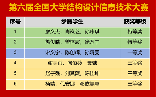 随着第六届全国大学生结构设计信息技术大赛落下帷幕,我校学子再次取得优异成绩。在各位指导老师和同学们的共同努力下,各参赛队伍克服重重困难,经赛务组复核、评委会评定,特等奖答辩等多个环节,最终摘得特等奖2项、一等奖1项、三等奖3项的荣誉。在整个备赛期间,各参赛队伍平均备赛时长超300小时,各指导老师平均指导时间突破100小时,为同学们获奖打下了坚实的基础。