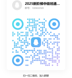 (6)具体上课时间及地点将另行在【2025新阶梯中级班答疑讨论群】中通知,请报名参与中级班的同学申请加群,QQ群号:1009830589,QQ群二维码如下: