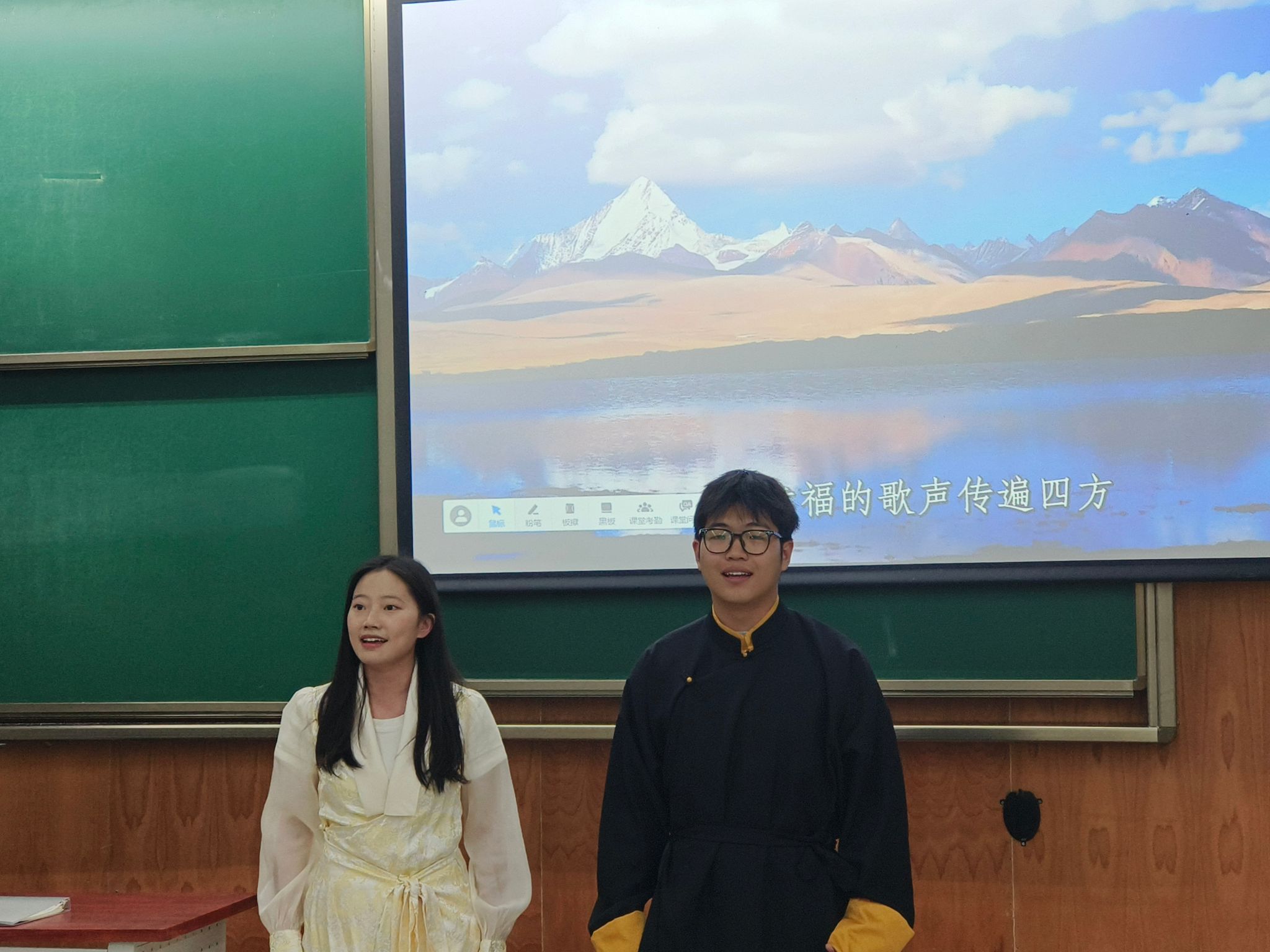 本次课程以“传承天路精神,共筑交通强国”为主题,精心设计四大核心环节:学习青藏铁路知识、宣讲青藏铁路精神、大学生艺术团成员合唱歌曲《天路》以及新老传承对话,系统展现了交通强国建设的精神脉络。