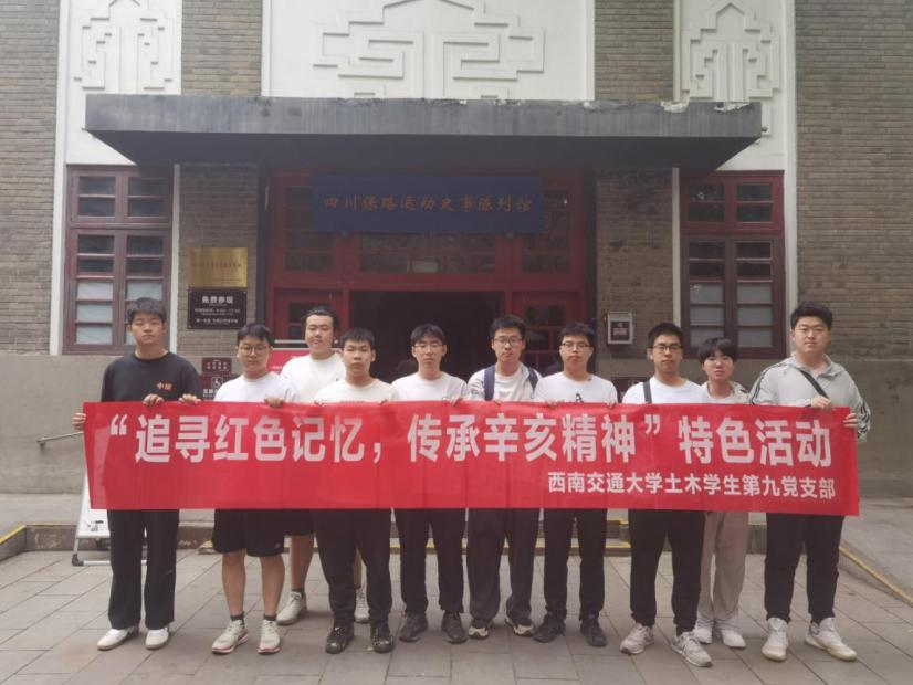 为学习领会习近平总书记关于加强党的作风建设的重要论述,巩固深化党纪学习教育成果,锲而不舍落实中央八项规定精神,扎实开展深入贯彻中央八项规定精神学习教育,进一步筑牢学生党员清正廉洁思想根基。土木学生第九党支部于9月6日开展“追寻红色记忆,传承辛亥精神”支部特色活动,依托成都人民公园的红色地标开展主题教育。