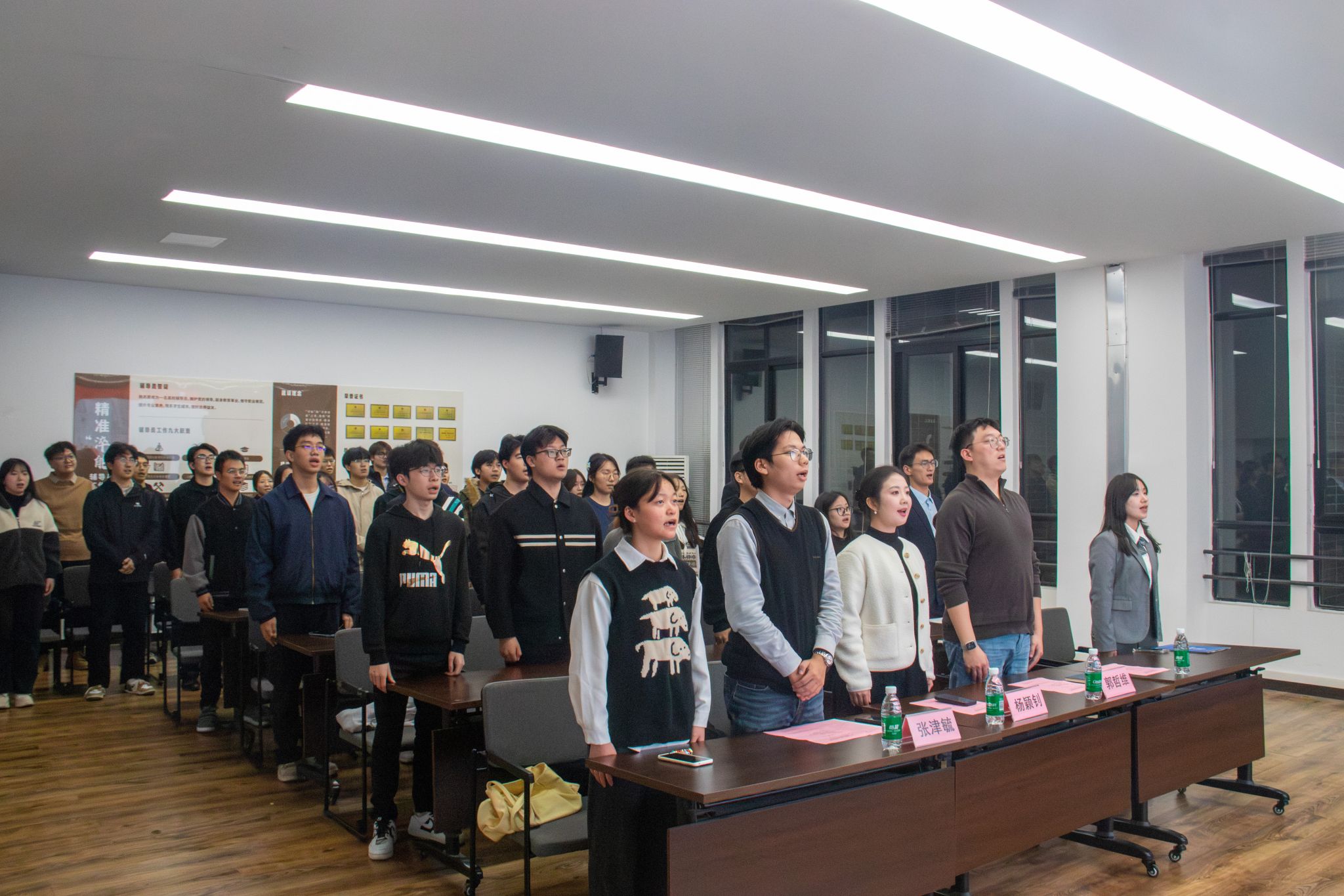 随后,开班典礼正式开始,典礼第一项,全体起立奏唱国歌。