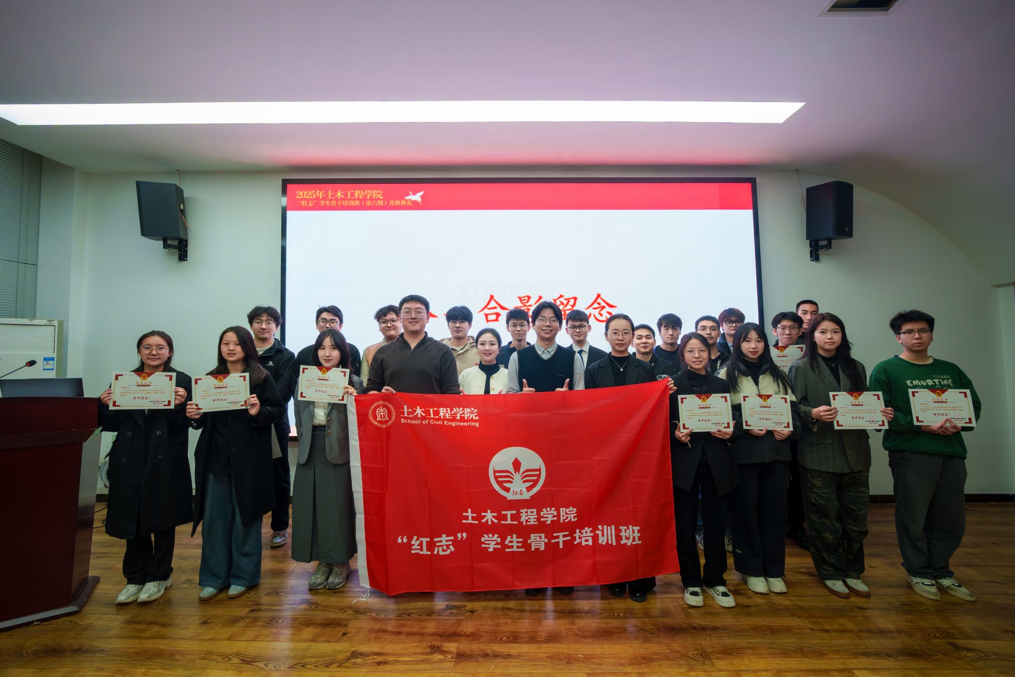 典礼第七项,全体学员在蒋方于同学的带领下庄严宣誓:“铭记兴我中华之责任,铭记土木百廿之历史;传承竢实扬华交大精神,发扬严谨治学土木传统……”铿锵有力的誓言回荡在现场,彰显着“红志”学生干部骨干的坚定信念与青春担当。