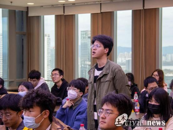 在最后的提问环节中,学生们就“大学生在校实习”、“中铁一局招聘情况”、“个人发展提升路径”和“应聘简历的制作”等多个角度提问,宋颖钊科长、程辉、学院青年讲师团成员庞进等人对此一一做出解答,强调了专业知识与个人能力的重要性,并为同学们做出了适合个人发展的建议。