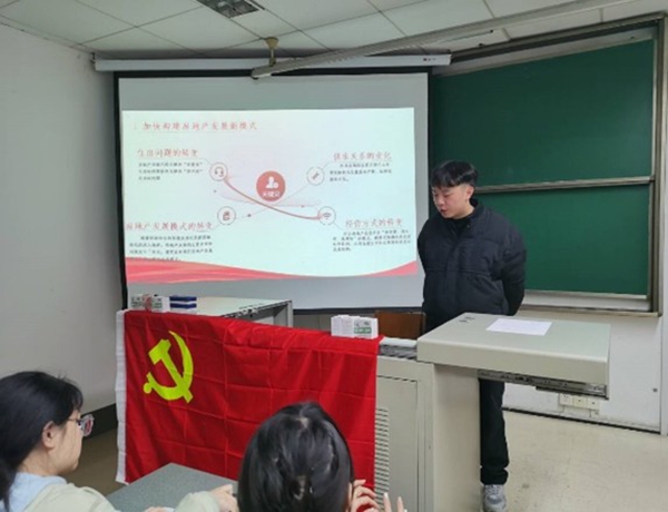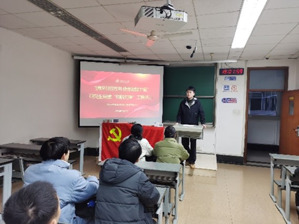 党委刘萍副书记作为嘉宾。活动开始,班长王晓波介绍参会嘉宾和活动流程,刘萍副书记发表开场致辞,强调理论学习的重要性,并勉励研究生党员提高党性修养。随后,刘萍副书记围绕党的二十届三中全会精神进行深入解读,帮助党员领会党的决策的先进性和正确性。同时,刘萍副书记结合研究生生活与同学们面对面交流,耐心解答同学们在学术研究、职业规划、心理健康、校园生活等方面的疑问。