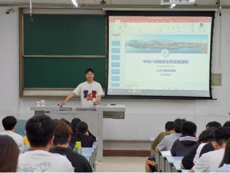 王森老师首先对中央八项规定和中央八项规定精神进行了介绍和阐释。中央八项规定其内容包括:改进调查研究、精简会议活动、精简文件简报、规范出访活动、改进警卫工作、改进新闻报道、严格文稿发表、厉行勤俭节约等8个方面;中央八项规定精神实质在于倡导厉行勤俭节约、反对奢侈浪费和奢靡之风、提倡廉洁从政以及坚持务实的工作作风等。与这些相违背的行为,即被视为违反了中央八项规定精神。随后,各位积极分子对关于“如何落实中央八项规定精神”的研讨进行发言,王森老师进行总结,以简单直观的方式让在场所有的入党积极分子学习领会中央八项规定精神实质