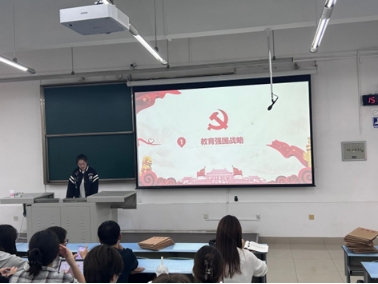 活动伊始,高润秋同志通过分享一张张历史图片和一段段珍贵影像,为支部成员生动展现了从虎门销烟到五四运动中华民族不屈不挠、奋勇抗争的爱国历程;然后,高润秋同志通过详实的数据与案例,介绍了新时代中国在科技、经济、文化等领域取得的辉煌成就,让大家深刻感受到了祖国的日益强大。在讲解过程中,高润秋同学还结合自身学习与生活经历,阐述了新时代青年如何践行爱国主义精神的具体路径。她提到:“我们青年学子要将个人理想融入国家发展大局,在学习专业知识中锤炼本领,为强国建设积蓄力量”。精彩的讲解引发台下支部成员的强烈共鸣,现场不时响起热烈掌声。