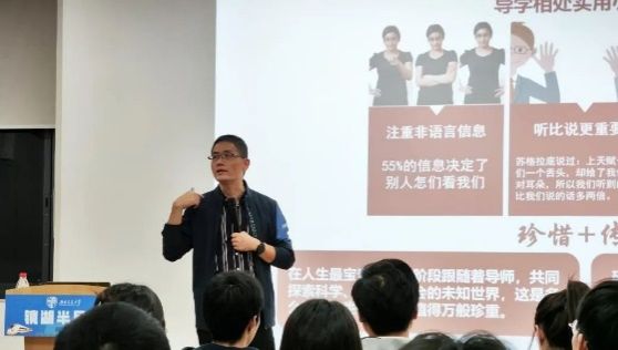 党委学生工作部副部长李毅分享如何科学地做好研究生生涯和职业生涯规划,明确学习目标及就业方向。李部长围绕导学相处、学术科研时间安排、研究生期间正确的应对心态、可能面临的误区、给研究生们的建议五个方面进行了讲解,并解答了在场观众的困惑。讲座结束后,参与同学表示受益匪浅,对开启研究生阶段学习和职业探索提供了有益的启发。