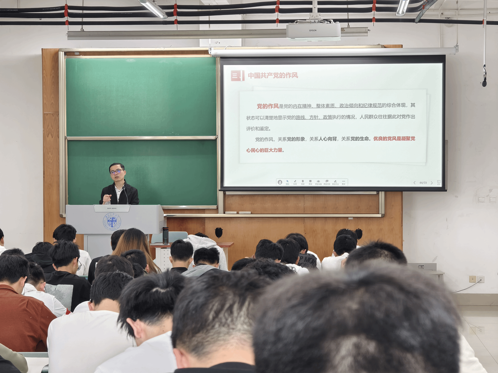 党委副书记周曦、李开弟老师、杨育鸿老师、刘萍老师、熊麟老师以及唐丹老师为入党积极分子讲授主题党课。
