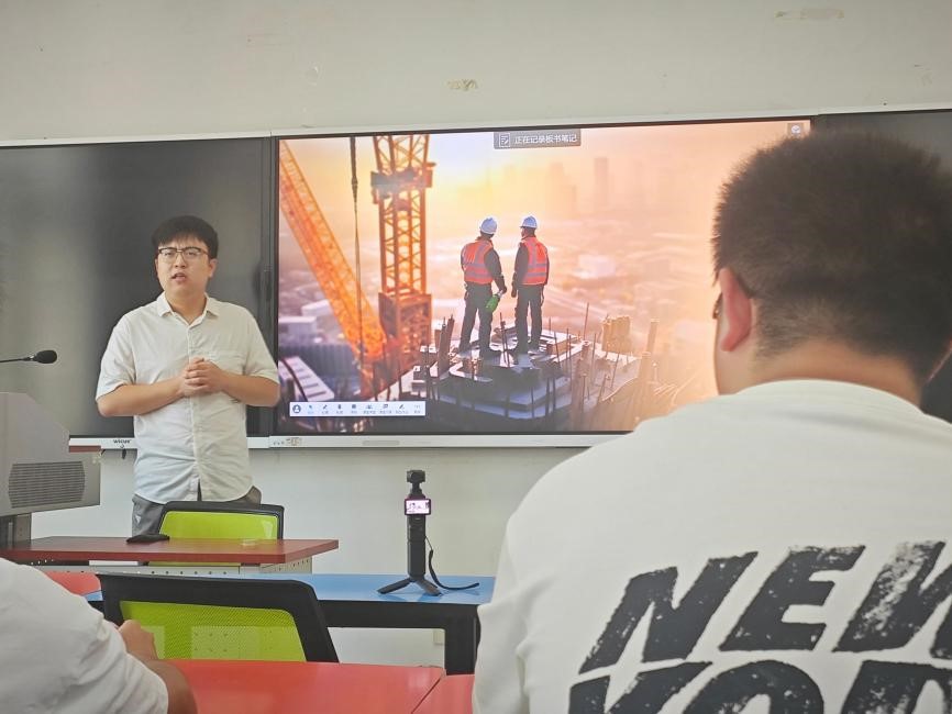 靳宇轩学长首先向大家介绍了自己在工程一线的工作经历。他回忆起最初进入项目时,由师傅带领自己一步步学习的时光。从基本的施工技术到更复杂的结构设计,他扎实的学习态度和不断积累的实战经验为后续的职业发展打下了坚实的基础。在学习和工作的过程中,靳宇轩还积极提升自我,先后发表了多篇学术论文,并考取了多个专业证书,尤其是二级注册结构工程师的证书。他详细分享了三次考取二级注册结构工程师证书的经历。每一次失败都让他更加认识到不足,激励他更加努力备考,最终顺利通过,成为了他职场生涯中的重要里程碑。经过三年的项目管理经验积累,靳宇轩顺利转向了经营开发领域,并最终进入商务管理部工作。他在分享过程中强调,职业发展不仅需要扎实的专业技能,还需要对行业的深入理解和对自身发展的清晰规划。此外,靳宇轩还提到了他在竞赛中的经历,分享了如何通过参与各种行业竞赛来提升自己。凭借出色的表现,他还获得了讲课的机会,成为了青年职场人士中的佼佼者。