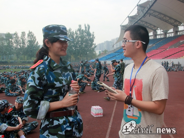 2015级的新生们仍在烈日下坚持军训。上午9时许,笔者来到了犀浦校区北区体育场,准备趁同学们休息的时候对方队的教官和标兵进行专访。