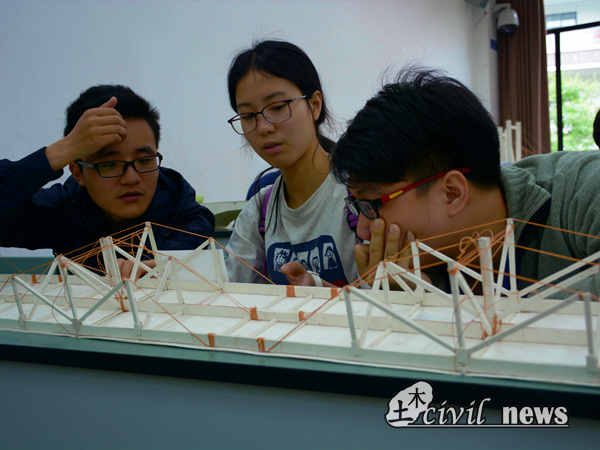 整个比赛展开得十分顺利,参赛队员们的心血在今天得到了预演,没一座桥梁都是桥梁工程师的心血,同样,今天的每一个模型都是参赛队员的努力结晶,希望在明天的决赛里,能够出现更精彩的对决。