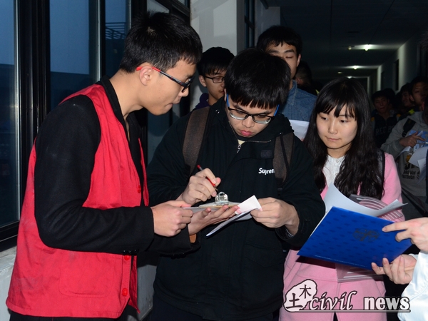 此次赛事吸引的不仅有来自土木学院的学生们,同时也有着来自其他学院的精英学子。在场排队的学生无不用语言彰显着他们无与伦比的自信。