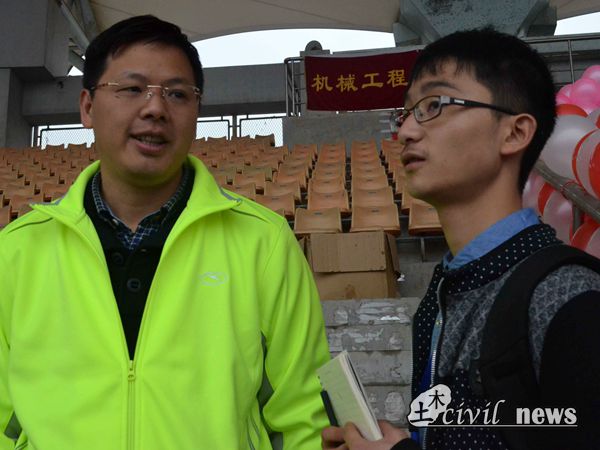 随后,土木学院党委副书记李锦红和李彤梅也接受了采访。据李彤梅书记介绍,我校十分重视体育,全校运动会按照“一年一小办,两年一大办”的原则已持续进行了多年。她希望师生们在繁忙的工作和学习生活中能够体会到学校的良苦用心,加强锻炼,争取以健康的状态和积极向上的精神面貌去面对一切。在接受采访时,李锦红书记表示,好的运动会就是让大家在运动的拼搏中感到快乐,并且有所收获,只要能够挑战自己,让自己有所超越,都是值得称赞的。李锦红书记希望土木学子能够奋勇拼搏、铸就辉煌,学会不骄不躁、不弃不馁。