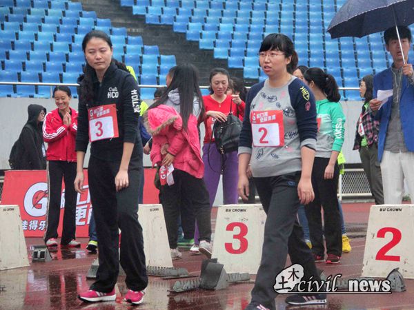具有趣味性的毛毛虫竞赛结束后紧接着便开始了激荡人心的男子女子100米预赛。检录好的运动员迈着轻盈矫健的步伐整齐的步入赛场。风雨中运动员们仍着单薄运动服,但他们内心火热的激情正燃烧着外界不断涌来的阵阵寒风,毫不畏惧。悠长的预备口令已响,运动员们神经紧绷,似悬而未发的箭,只等待那最一刻的到来。枪声未落,他们早已冲向远方。看,土木学院的刘楚强,那潇洒的背影,矫健的身姿最终以12秒的成绩成功杀进决赛。