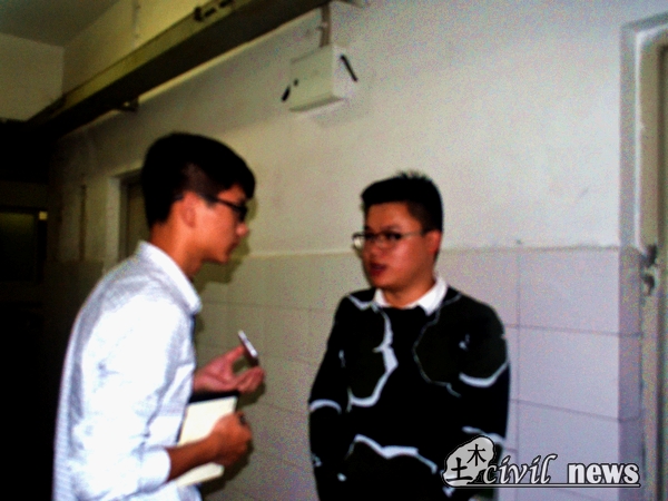 之后,王若羽老师接受了记者的采访。王若羽老师首先大致介绍了此次初赛的评分标准,第一是寝室卫生,其次是寝室的装修氛围,创意、整体效果与花费,最后就是每个寝室的讲解。王若羽特地提到一点,就是寝室是大家学习的第二个地方,装修寝室有没有考虑到突出学习也是评分的一条。随后,王若羽老师表达了他对此次寝室装潢大赛的意义的看法。他说,寝室是大家生活4年的地方,大家在寝室里一起学习,生活,相当于一个家。寝室装潢大赛,是给大家装修自己的家,增进彼此的感情和寝室的和睦度,让大家来自五湖四海仍能感受到家的温暖。