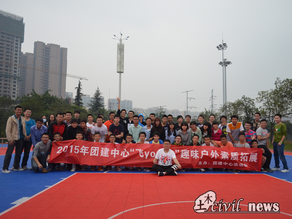 团建中心主办的2015年“飞young”趣味户外素质拓展在南区篮球场顺利举行。参与这次活动的人员主要是团建中心15级的新成员。但是为了增进新老成员之间的沟通与交流,一些老成员如团建中心主任魏冠华也参与其中。尽管天气不佳,但也阻不住团建大家庭美好而又温馨的氛围。