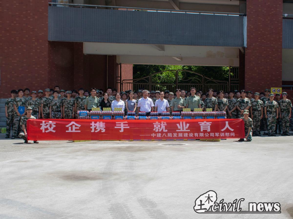 联合中建八局发展建设公司西南分公司在学生园区举行军训慰问活动。中建八局发展建设公司西南分公司党总支副书记、总经理郭兴鹏书记,芒果视频
