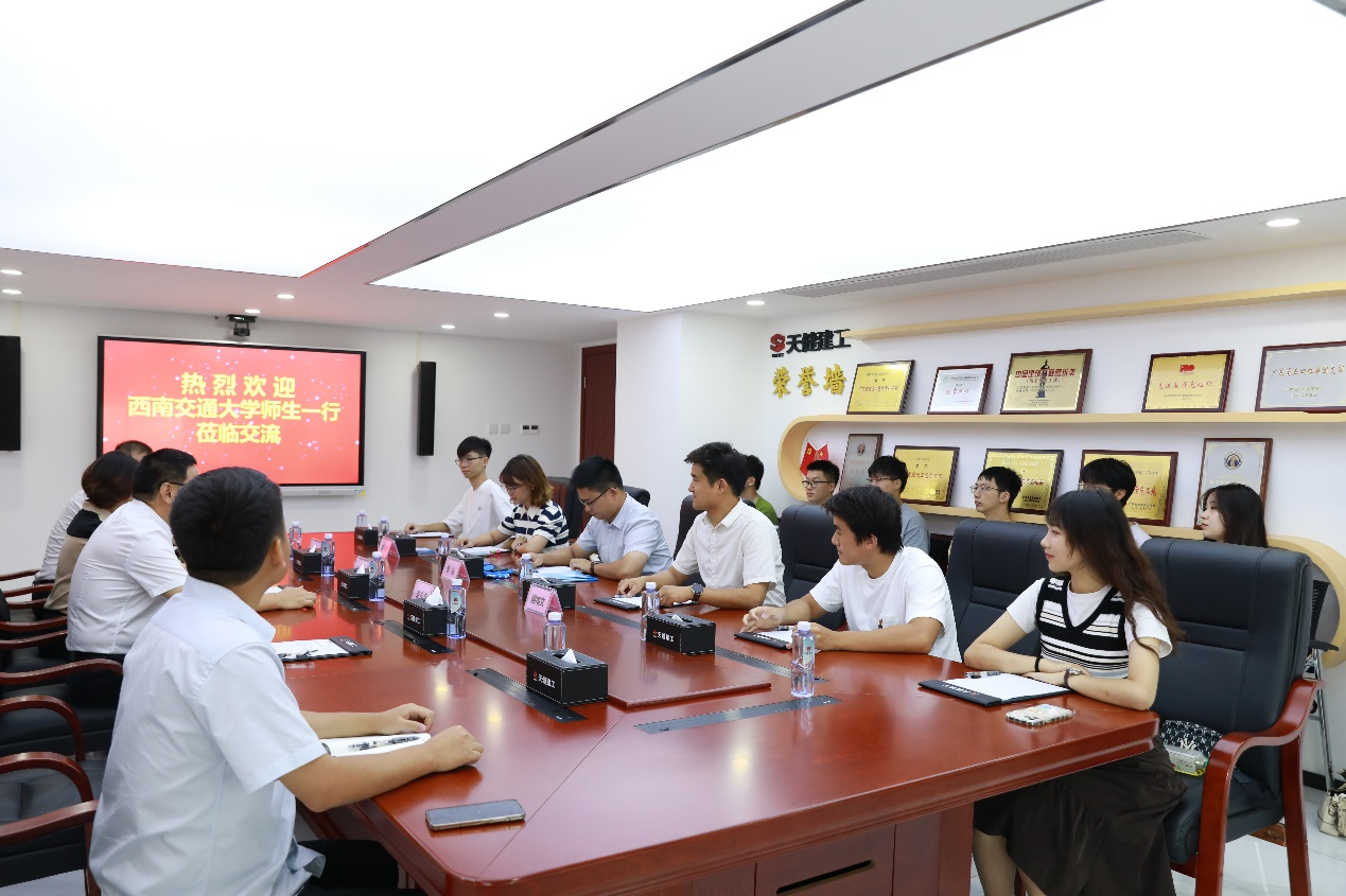 8月21日上午,队伍前往天健建工集团公司进行交流座谈,就房建行业的现状和就业岗位进行了深入讨论。座谈会上,企业领导向队员们详细介绍了天健建工集团公司的主要业务领域及在克服施工重难点工程中所取得的成绩,展示了公司详备的职员培养方案和奖励机制;李裕介绍了本校芒果视频