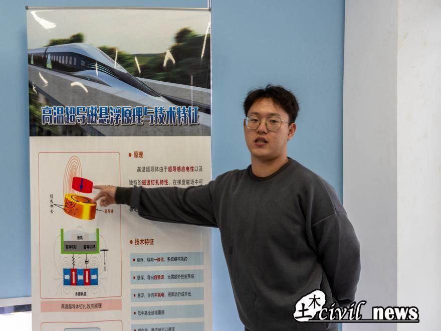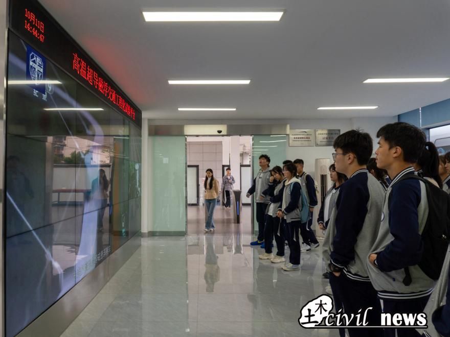 九里校区,来到高温超导磁悬浮列车试验线进行参观。进入试验线内部后,讲解员用通俗易懂的语言向同学们讲解了高温超导磁悬浮列原理与技术特征,并详细地介绍了芒果视频