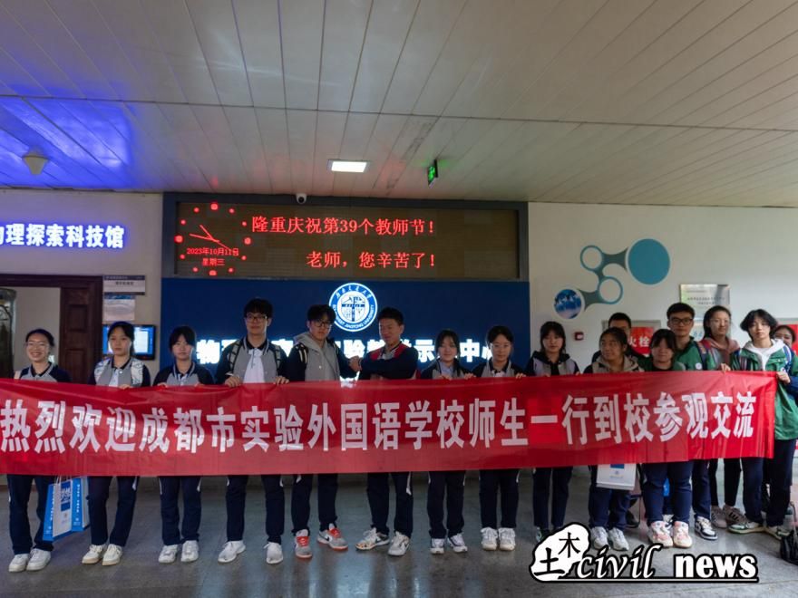 党委副书记周曦,团委书记刘萍,桥梁系老师张方。成都市实验外国语学校国际部校区负责人夏翔凌,老师刘燕妮,研学带队老师何长洋、何柯达。