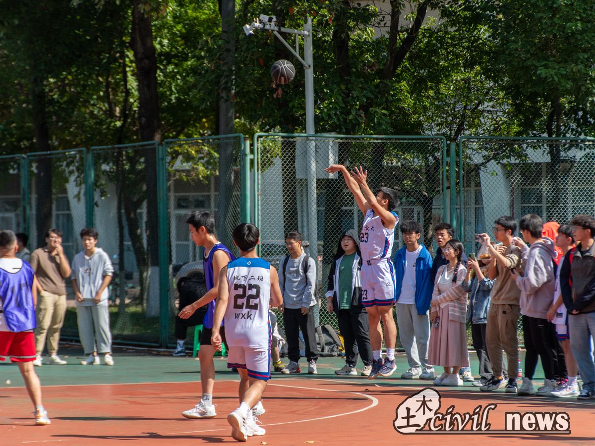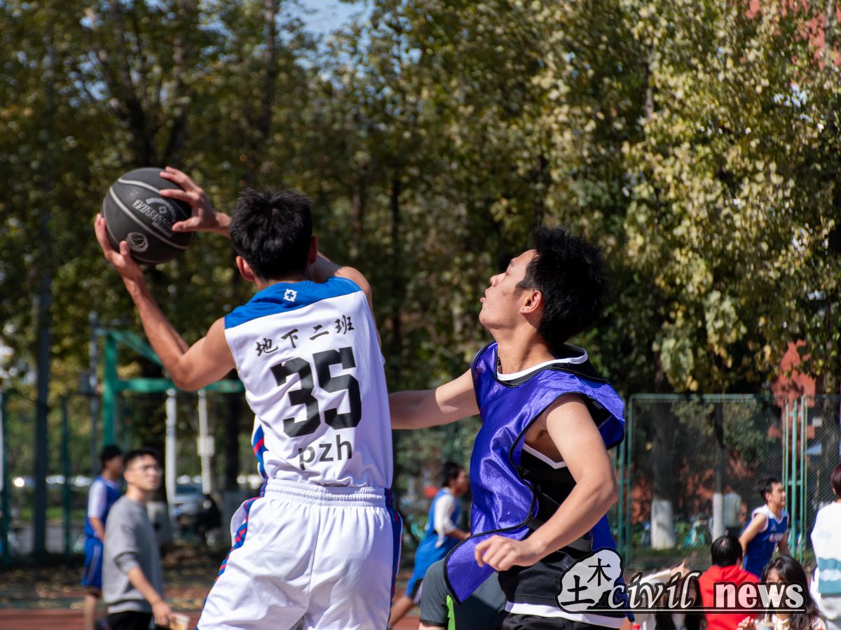 新生杯篮球赛决赛在北区篮球场拉开帷幕。经过前期层层角逐,入围此次决赛的两支队伍分别是地下2班和土木10班。