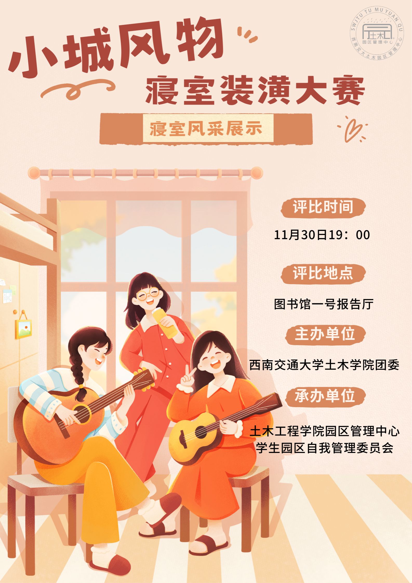 由土木园区管理中心承办的寝室装潢大赛决赛将于1130日(周四)19:00在图书馆1号报告厅举行,欢迎各位同学到场观赛!