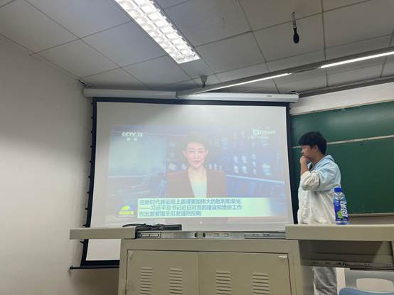 在党员代表领学述学环节,张凌霄同志带领大家学习了习近平在庆祝中华人民共和国成立74周年活动讲话精神,分别从庆祝中华人民共和国成立74周年,贯彻落实党的二十大精神,积极应对百年未有之大变局三个方面,带领大家深入学习。领略中国共产党团结带领全国各族人民艰苦奋斗取得的巨大成就,坚定贯彻落实党的二十大精神,坚定维护国家主权、安全、发展利益,并且我们要积极应对百年未有之大变局,巩固拓展脱贫攻坚成果,全面推进乡村振兴,扎实推进共同富裕,不断增强人民群众获得感、幸福感、安全感。我们要紧密地团结在以习近平同志为核心的党中央周围,坚持以习近平新时代中国特色社会主义思想为指导,全面贯彻落实党的二十大精神和习近平在庆祝中华人民共和国成立74周年讲话精神,脚踏实地,为推进民族复兴做出自己的贡献。党员代表马怀纲同志带领大家学习习近平总书记近期重要讲话重要指示精神和习近平总书记有关主题教育最新重要讲话精神,切实提醒党员同志,党员同志要积极开展理论学习,我们党组织要提升政治站位,主动对标对表,不折不扣贯彻落实习近平总书记有关主题教育最新重要讲话精神,真正在以学铸魂、以学增智、以学正风、以学促干上取得明显成效。并且带领深入学习党员教育管理条例,在同学中要挑重担、当先锋、打头阵,以模范行为为党旗争光添彩。
