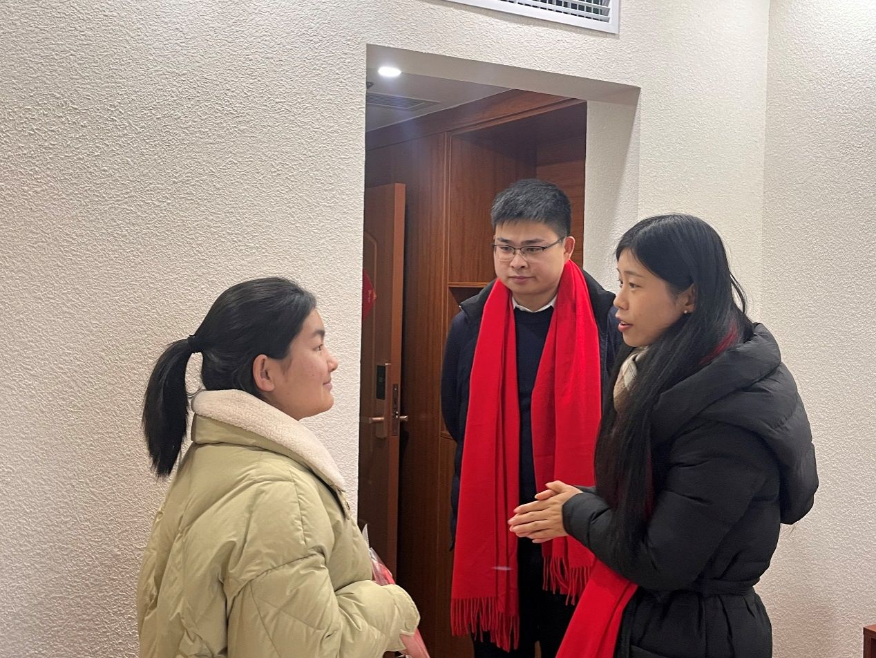 为做好寒假期间留校学生生活保障工作,加强对留校学生的关怀和帮助,营造美好的节日氛围,2月2日上午10:00,学工组副组长刘萍、辅导员张进、李裕、李阳阳、谭力豪、彭畅宇一行走访慰问留校学生,为留校学生送去新春祝福。