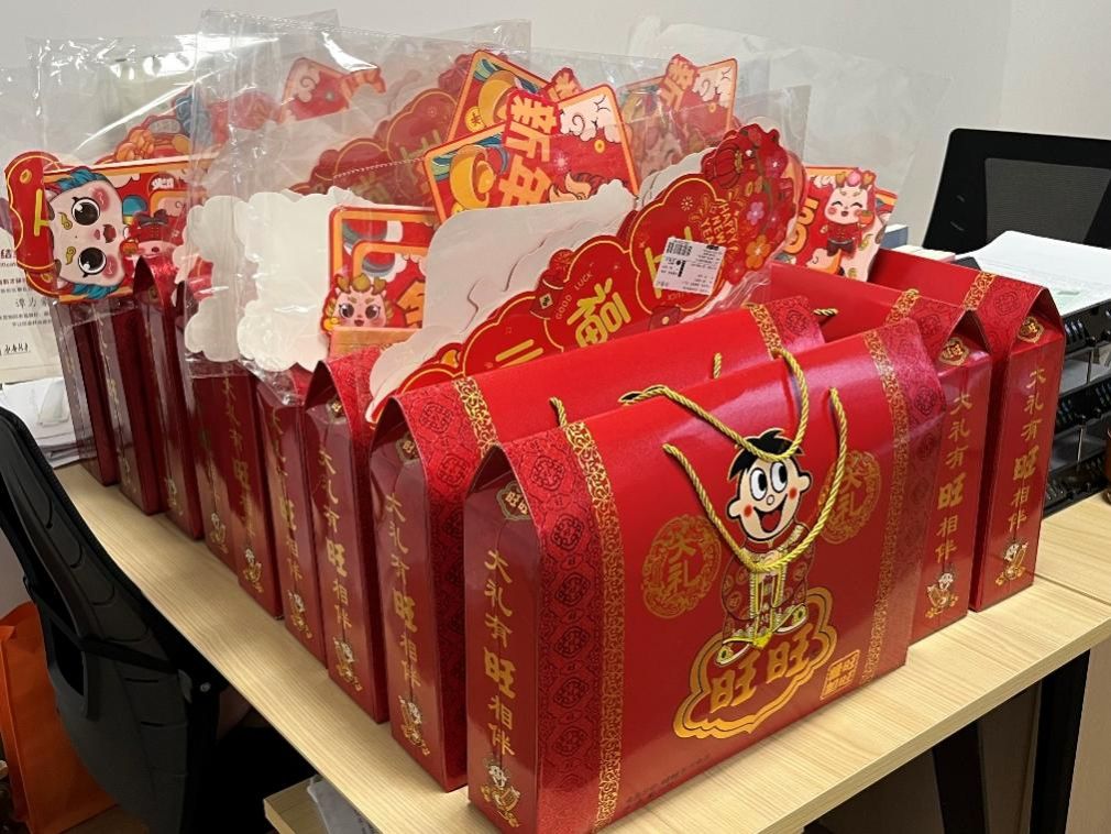 今年,学院为每一位留校学生精心准备了“红小土陪你过大年”新春慰问大礼包,此外,还准备了营造节日氛围的“福”字、春联、红小土玩偶等小礼品。