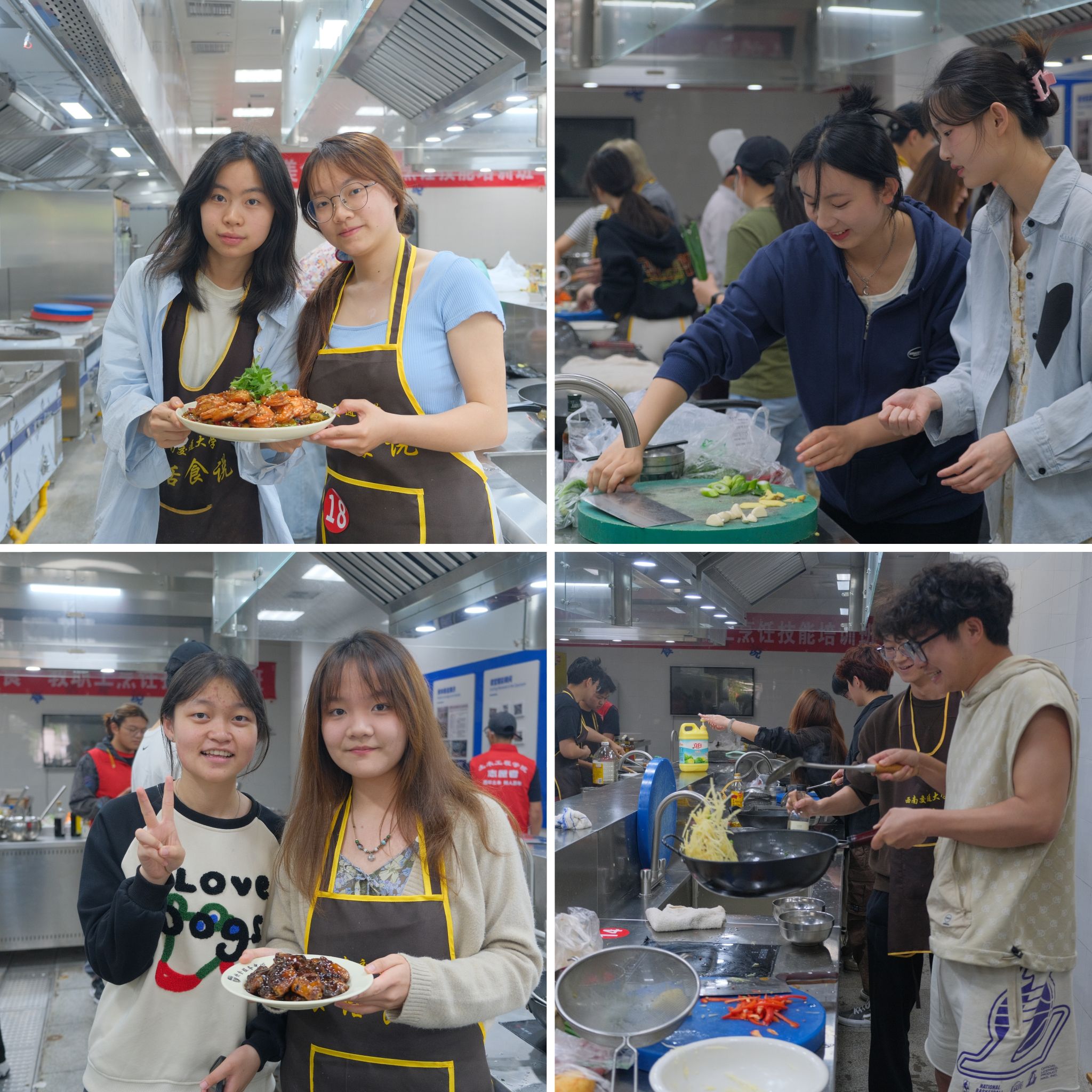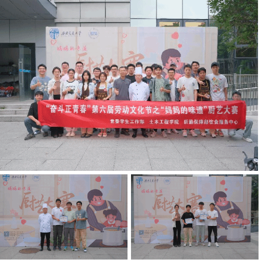 辅导员张进、王童、李阳阳等参与本次活动。经过初赛的选拔,共有8组选手入围决赛,在决赛中,来自不同学院的选手们纷纷拿出自己的拿手好菜,用一道道美食展示了他们心中的妈妈的味道。参赛者们烹饪了具有家乡特色的传统菜品以及具有精巧构思的创意菜品,选手们与嘉宾评委共享了这场独特的美食盛宴。