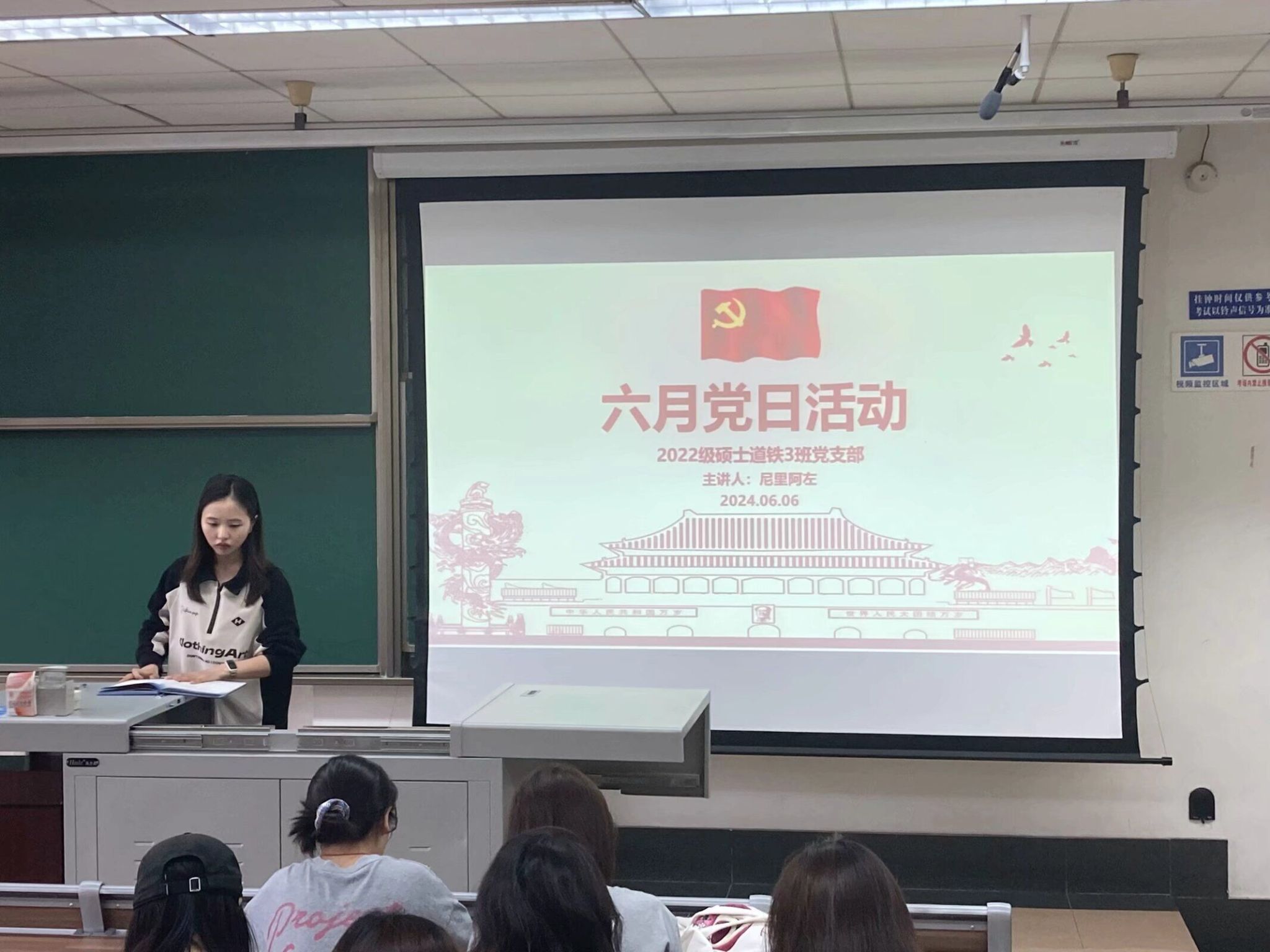 2022级道铁3班党支部于6月6日在九里4323室进行了6月的第一次组织生活会,组织生活会采用线下进行,活动共有12位党员同志、8位入党积极分子参与。本次活动由支部书记尼里阿左、宣传委员张世龙和组织委员屈姝君组织,主要内容是组织党员同志进行阶段性深入学习,团结党员同志,坚定信心,振奋精神,坚定不移朝着强国建设、民族复兴的宏伟目标奋勇前进。