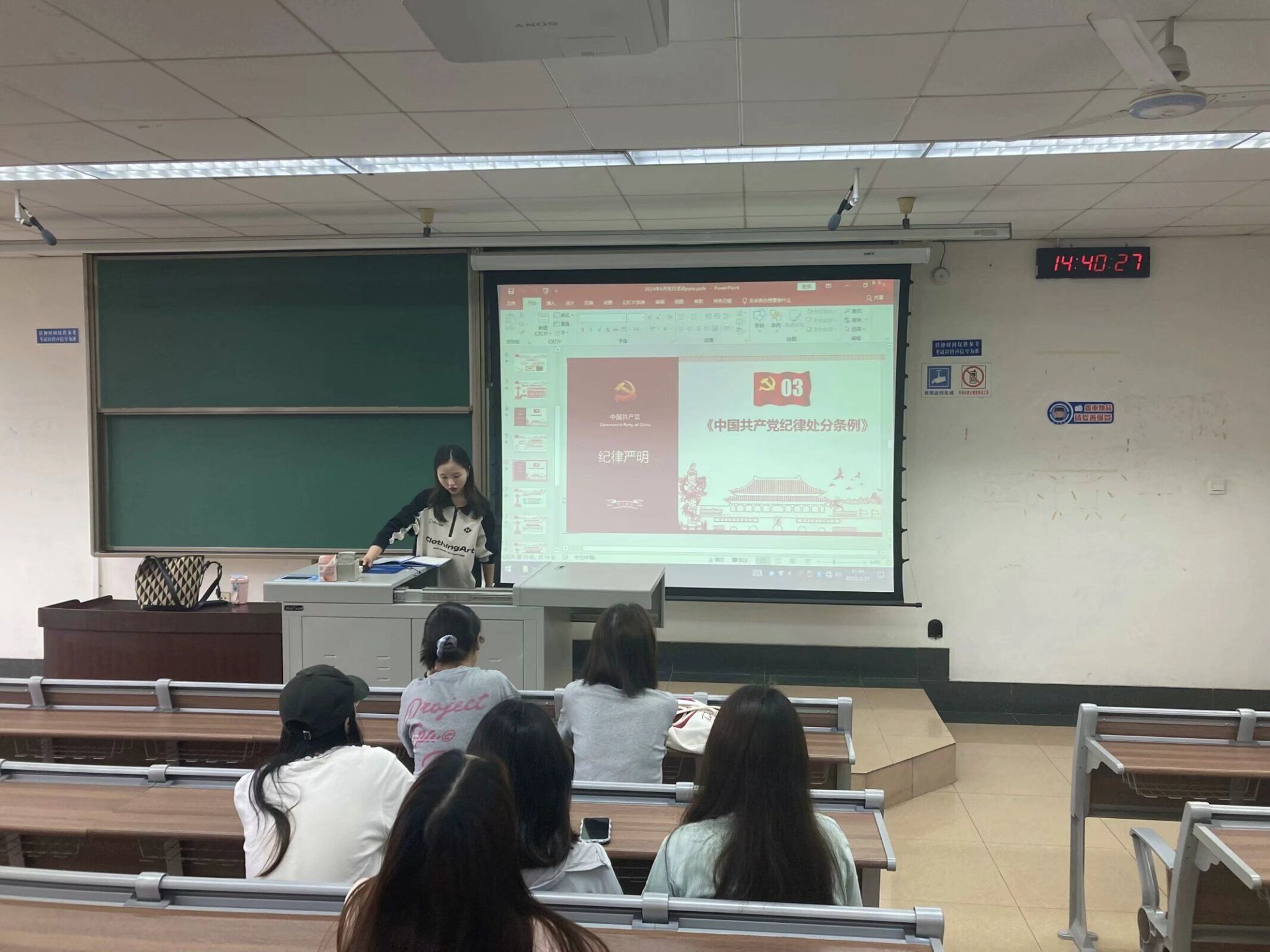 会议主要从学校思政课教育方面建设、五四青年寄语和《中国共产党纪律处分条例》三个面反进行讲解。十八大以来,党中央始终坚持把学校思政课建设放在教育工作的重要位置,党对思政课建设的领导全面加强,各级各类学校社会主义办学方向更加鲜明,思政课教师乐教善教、潜心育人的信心底气更足,广大青少年学生“四个自信”明显增强、精神面貌奋发昂扬,思政课发展环境和整体生态发生全局性、根本性转变。习近平强调,新时代新征程上,思政课建设面临新形势新任务,必须有新气象新作为。今年是新中国成立75周年,是五四运动105周年。新时代新征程上,全国各族青年听从党和人民的召唤,在科技创新、乡村振兴、绿色发展、社会服务、卫国戍边等各领域各方面勇当排头兵和生力军,展现出自信自强、刚健有为的精神风貌。党中央对广大青年充分信任、寄予厚望!