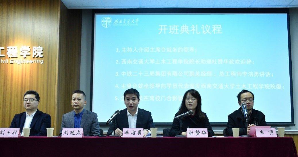 2024年1月15日上午8:20,中铁二十三局集团有限公司项目总工程师(房建专业)培训班开班典礼在九里校区土木馆举行。出席此次开班典礼的有中铁二十三局集团有限公司副总经理、总工程师李洁勇、中铁二十三局集团有限公司科学技术中心总经理刘延龙、中铁二十三局集团有限公司人力资源部经理刘玉柱、芒果视频