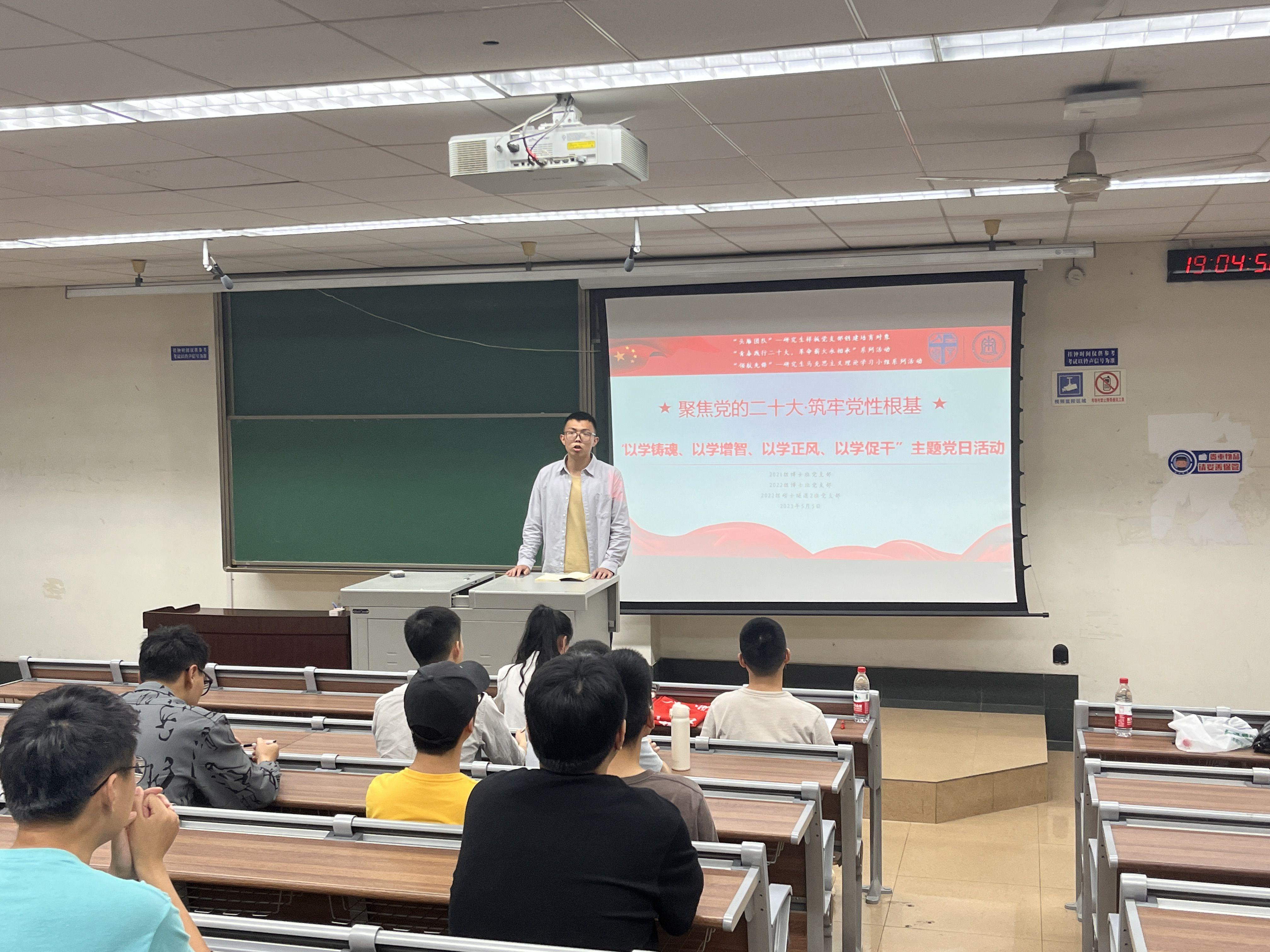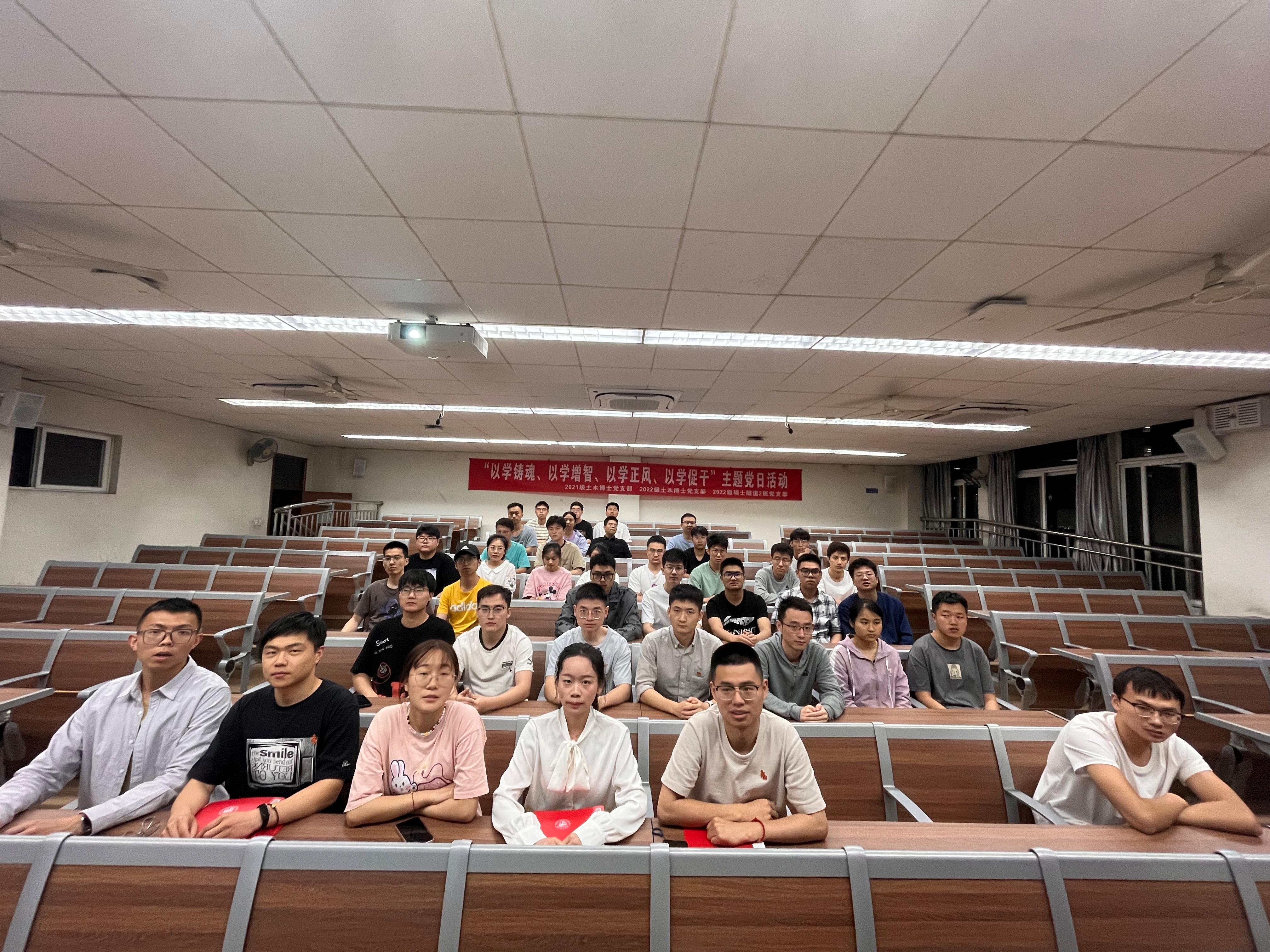2023年5月5日,为深入学习贯彻习近平新时代中国特色社会主义思想和党的二十大精神,2021级博士班党支部、2022级博士班党支部和2022级硕士隧道2班党支部在逸夫馆4324教室联合开展了“以学铸魂、以学增智、以学正风、以学促干”主题党日活动。