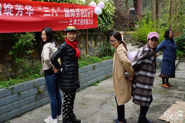 到达活动地点,大家开展了多种多样的活动。首先以一套太极拳作为热身。随后进行了“托乒乓球”接力游戏和“背靠背”气球传送游戏,游戏中欢声笑语不断,所有人都徜徉在节日的氛围中。趣味游戏过后进行了合影留念。