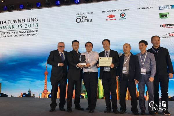 参与的蒙华铁路白城盾构隧道荣获“国际隧道协会2018年度技术创新项目奖”