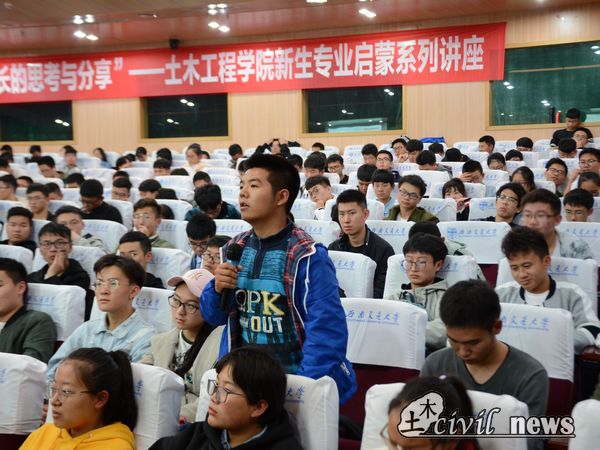 一番深情诉说之后,张总回忆起了自己从在西南交大读书到在中铁二院实习、工作以及到国外深造的成长经历,他以自己的成长特点,向大家分享了他关于大学学习与生活的思考。他提出,机会永远留给有准备的人,要学会敬畏、自审、规划、不断规范警醒自己,时刻记住一分耕耘一分收获,同时对于学习要勤于思考。对同学们,张总表示能进入交大,特别是土木学院,机会难得,因为它代表了国家在铁路和轨道交通方面的最高水平,也代表同学们将来会进入最高水平的铁路和城轨领域,他也殷切期望同学们学有所成。紧接着,张总向大家分享了关于将来工作方式的思考,教导同学们规划好自己的人生。