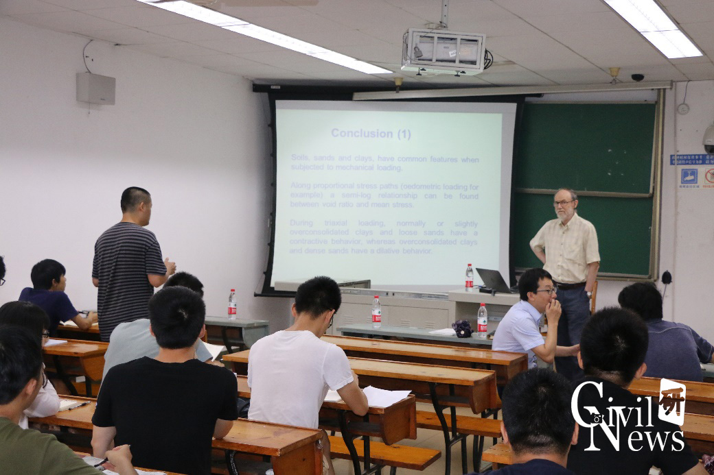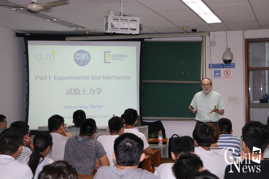 7月2日下午两点半,Hicher教授讲了有关试验土力学的知识,在这场讲座上Hicher教授讲了丰富的内容,包括土的各向同性压缩、固结压缩特性和三轴试验等相关学术知识。