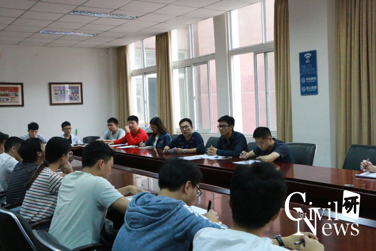 2018-2019学年第一次研究生班长、党支书培训会在九里校区土木馆1324召开。本次会议由叶礼宁老师主持,学工组石莹老师、辅导员任权老师以及2018级研究生各班级班长、党支书参加本次培训会。